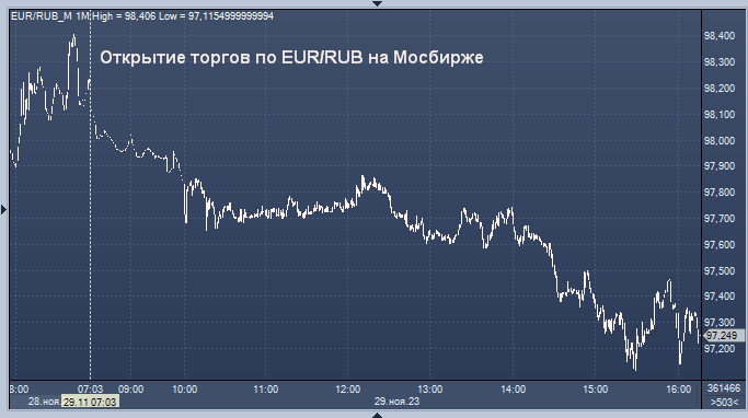 Таким образом, по официальному курсу ЦБ доллар вырос к рублю на 27 копеек, евро также упал к рублю на 59 копеек, а китайский юань вырос к рублю на 9 копеек по сравнению с официальным курсом среды. Объем торгов на Московской бирже к 16:14 мск среды составил 1 581,3764 млрд рублей или 17 846,4378 млн долларов.