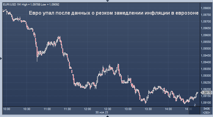 Евро продолжил нести потери после того, как данные показали, что инфляция в еврозоне была ниже, чем ожидалось, в ноябре, что породило надежды на снижение процентных ставок со стороны Европейского центрального банка.