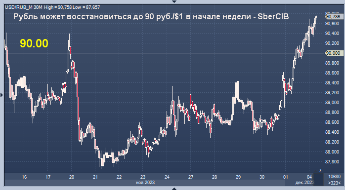 Рубль может восстановиться в начале недели до 90 руб./$1 при поддержке экспортеров, а нефть, скорее всего, будет торговаться в интервале $78-79 за баррель Brent, пишут эксперты SberCIB Investment Research.