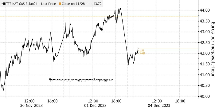 В понедельник фьючерсы на газ подешевели на 4,9%, прервав двухдневный период роста, зафиксированный в конце прошлой недели.