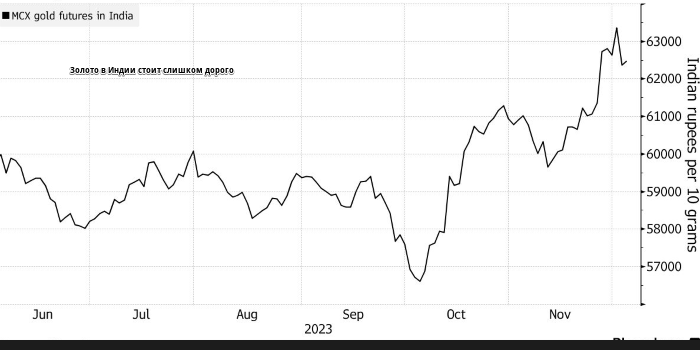 В понедельник спотовые цены на золото выросли до рекордного максимума. С начала октября драгметалл подорожал более чем на 10% на предположениях, что Федеральная резервная система США снизит ставки в начале следующего года. Ослабление рупии означает, что в Индии, которая полностью зависит от импорта, слитки стоят еще дороже.
