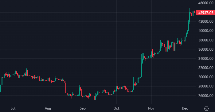 Таким образом, многие участники рынка ждут роста цены биткоина в область $50 000 в начале следующего года. Считается, что этому может способствовать запуск профильных ETF, если их одобрит американская Комиссия по ценным бумагам и биржам (SEC). Заявки на запуск таких инструментов уже подали несколько компаний, включая крупнейшего в мире управляющего активами — BlackRock.