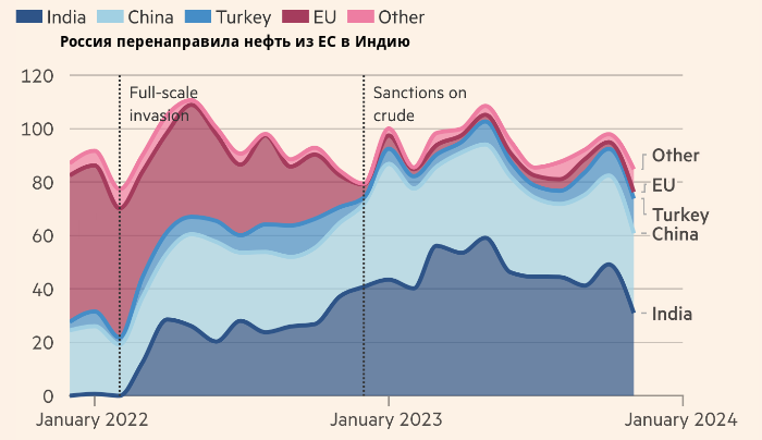 Но если эмбарго для стран ЕС сработало, то вот потолок цен оказался малоэффективным. Западные чиновники признали, что почти все баррели из России продаются дороже $60.