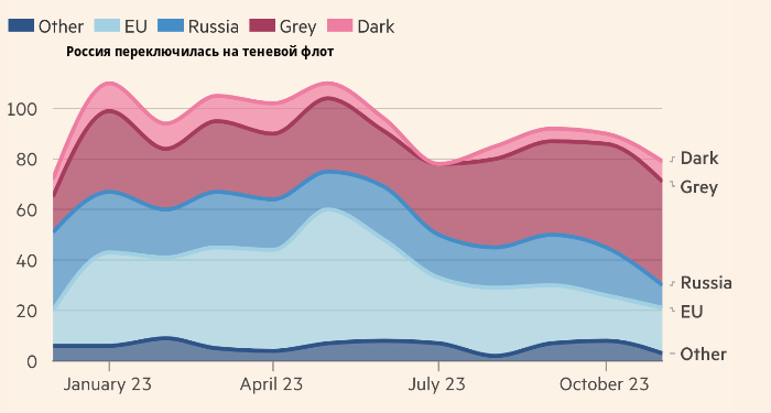 Компания Kpler, занимающаяся данными и аналитикой, разделила суда, перевозящие российскую нефть, на три основные группы: принадлежащие России; так называемые суда «темного флота», ранее участвовавшие в перевозке санкционной нефти из Венесуэлы или Ирана; и «серый флот», собранный после начала военных действий на Украине.