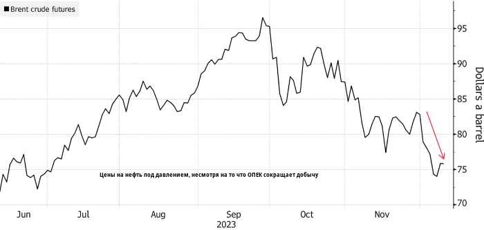 Пока трейдеров не слишком впечатляют обещания картеля. Многие настроены скептически и не верят, что ОПЕК+ сумеет эффективно сократить поставки и уменьшить профицит предложения в первой половине года. После ноябрьской встречи ОПЕК+ нефть подешевела примерно на 10%. Тем временем для многих стран-участниц ОПЕК нефть по $70-$80 — это слишком мало. Они не покроют свои государственные расходы. Саудовской Аравии нужна нефть по цене примерно $100, сообщает Bloomberg Economics.