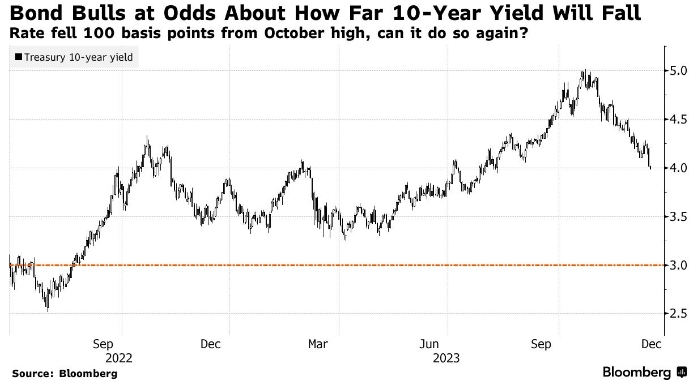 Джеффри Гундлах из DoubleLine Capital говорит, что доходность по 10-летним облигациям США упадет до диапазона около 3%, поскольку центральный банк, скорее всего, снизит целевую ставку на два процентных пункта в следующем году. Бывший король облигаций Pimco Билл Гросс отверг такую эйфорию, заявив, что доходность стабилизируется возле 4%.