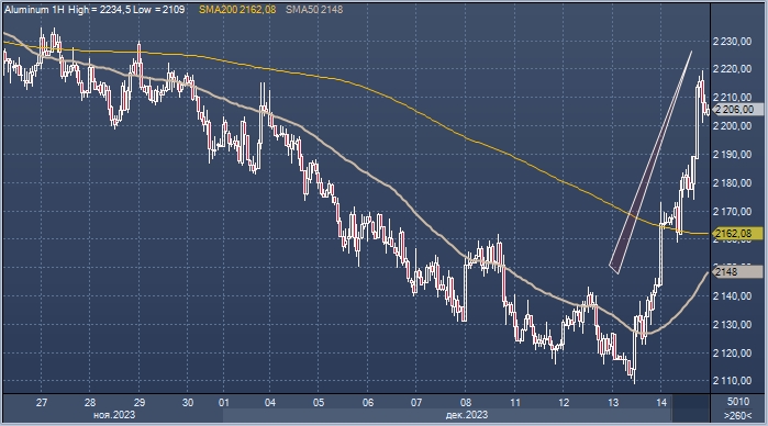 - алюминий подорожал на 3,3% до 2210 доллара за тонну,