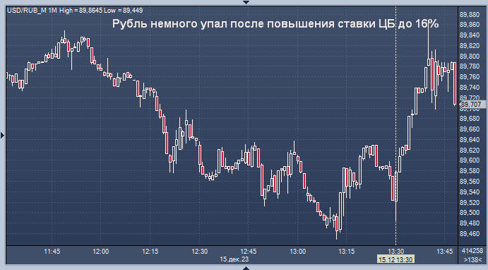 Совет директоров Банка России 15 декабря 2023 года принял решение повысить ключевую ставку на 100 б.п., до 16,00% годовых.