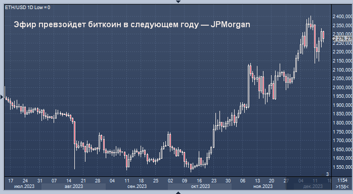 В своем прогнозе по криптовалюте на 2024 год они ждут, что эфир (криптовалюта Ethereum, Ether) обгонит биткоин и отвоюет долю рынка.