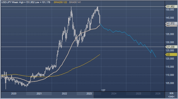 Такашима ожидает, что курс USDJPY упадет до 135 или ниже в следующем году. В течение двух-трех лет курс доллар/иена может упасть до 120.