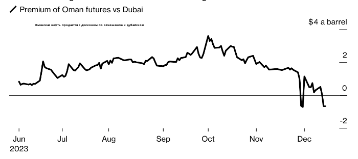 По словам трейдеров, так называемая среднесернистая нефть с Ближнего Востока резко дешевеет относительно дубайской нефти, которая считается региональным эталоном. Аналитики связывают это со слабым спросом из Китая и увеличением поставок. На прошлой неделе катарский сорт Al-Shaheen торговался со скидкой к бенчмарку впервые с октября 2020 года, цены на нефть из Омана тоже упали.