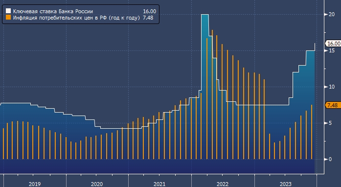 «Мы полагаем, что ЦБ пока планирует закончить цикл ужесточения на текущем уровне ключевой ставки (16% годовых), это заложено и в ожиданиях рынка. Нейтрализация ДКП вряд ли начнется раньше середины 2024 года. Среди рисковых сценариев мы видим еще одно повышение в феврале. Источником неопределенности остаются проинфляционные риски (возможные социальные бюджетные выплаты, высокие инфляционные ожидания, потребительский оптимизм). Также мы уточнили прогнозную динамику инфляции с учетом актуальных данных. Несмотря на повышенную ценовую динамику сейчас и, скорее всего, в 1П24, ждем ее стабилизации вблизи цели ЦБ (4,0...4,5% г/г к концу 2024 года)», - пишут они.