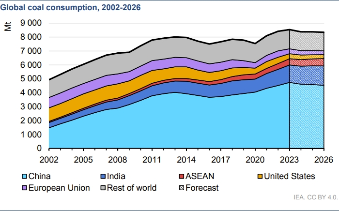 Ожидается, что использование угля не снизится до 2026 года, когда значительное расширение мощностей возобновляемых источников энергии (которое будет реализовано в ближайшие три года) поможет снизить потребление на 2,3% по сравнению с уровнями 2023 года, даже при отсутствии или более сильной политики экологически чистой энергетики.