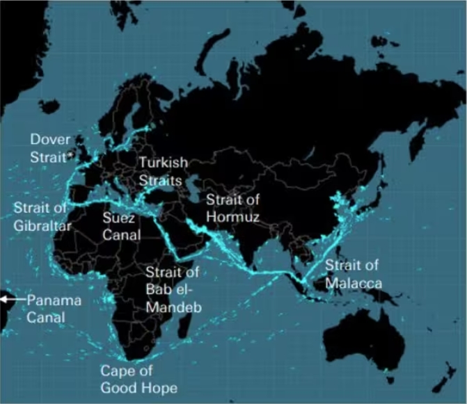 Хотя океаны покрывают большую часть поверхности Земли, большинство товаров, поступающих в международную торговлю, в какой-то момент проходили через семь узких мест и/или мыс Доброй Надежды. Взрывной рост в Азии привел к отправке через них все большего количества товаров.