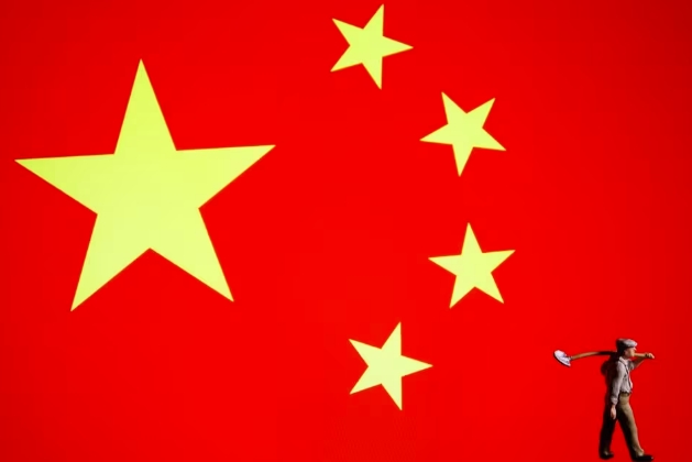 На этом иллюстративном снимке, сделанном 6 июля 2023 года, изображена миниатюра рабочего с флагом Китая. REUTERS/Florence Lo