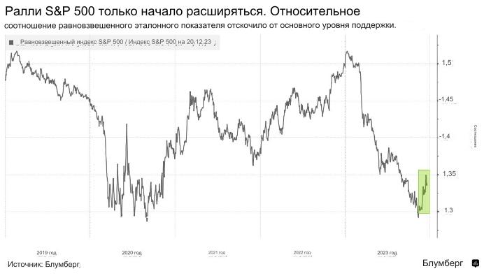 Ралли акций США с конца октября усиливается на фоне оптимизма по поводу того, что Федеральная резервная система начнет снижать процентные ставки в следующем году, в то время как экономика избежит серьезного замедления. Но по некоторым показателям рост стал экстремальным: индекс относительной силы S&P 500 в какой-то момент показал, что эталонный индекс является самым перекупленным с 2020 года.