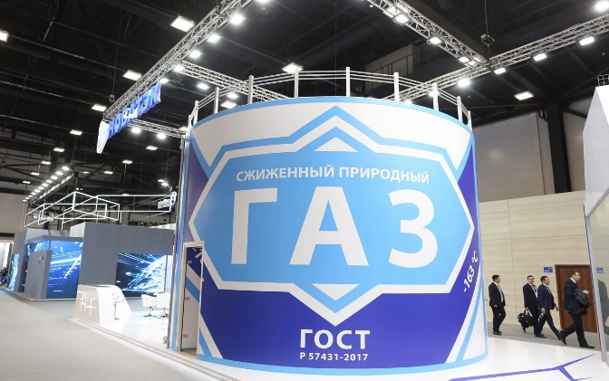Макет газохранилища выставлен в корпоративном павильоне ПАО «Новатэк» на Международном арктическом форуме в Санкт-Петербурге. Фотограф: Андрей Рудаков/Bloomberg
