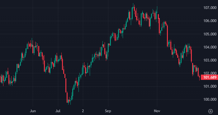 В последние месяцы доллар оказался под давлением: этому способствовали усиление ожиданий относительно скорого начала снижения процентных ставок в США, а также высокая глобальная ликвидность. Кроме того, исторически декабрь — самый слабый месяц для американской валюты: за последние пять, десять и двадцать лет индекс DXY снижался в декабре в среднем на 1,56%, 0,82% и 0,74% соответственно. Более того: индекс снижался шесть последних декабрей подряд.