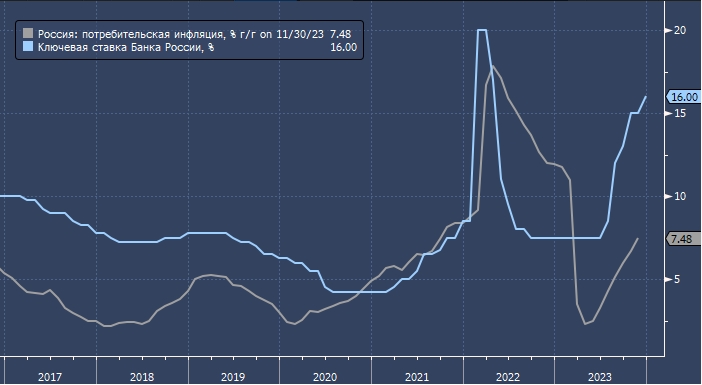 В начале декабря центральный банк повысил ключевую процентную ставку на 100 базисных пунктов до 16%, проводя пятое заседание подряд в ответ на устойчивую инфляцию, и предположил, что цикл ужесточения почти закончился.