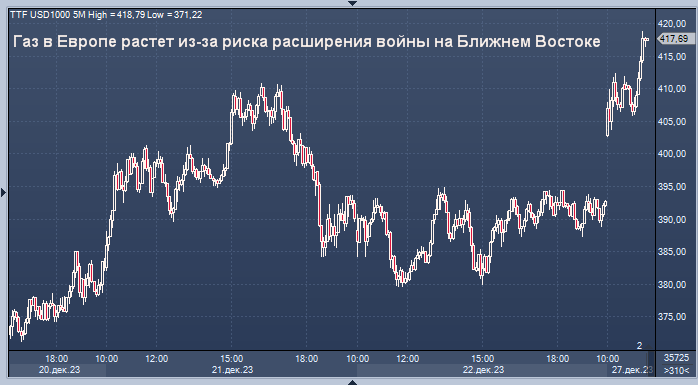 Европейские фьючерсы на природный газ подскочили на фоне эскалации войны в секторе Газа, которая рискует перерасти в более широкий конфликт.