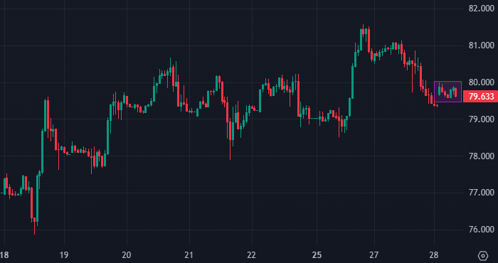 Цена нефти Brent интервалами 1 час