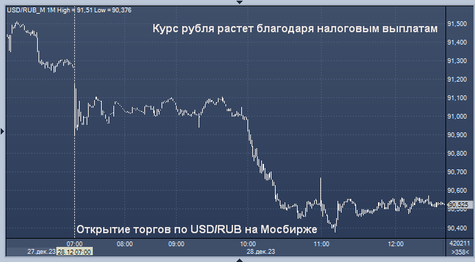 "На мировых рынках снижение доллара остановилось. До конца текущей недели часть инвесторов может предъявлять дополнительный спрос на валюту, стремясь минимизировать риски в преддверии праздников. С учетом сниженных объемов торгов это может способствовать локальному давлению на рубль. Но мы ожидаем, что при отсутствии неожиданных новостей ситуация существенно не изменится. По оценке, доллар США в оставшиеся два дня уходящего года будет стоить в пределах 91-92 руб./$1", - указывают эксперты в комментарии.