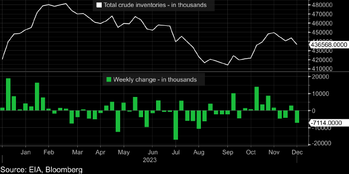 При этом запасы сырой нефти снизились на 7,11 млн баррелей (рекордное значение с 25 августа) до самого низкого уровня с 3 ноября.