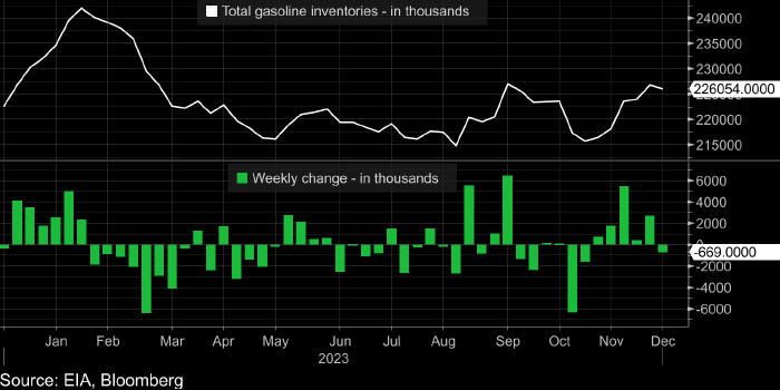 Запасы бензина снизились на 0,67 млн баррелей (рекордное значение с 10 ноября).