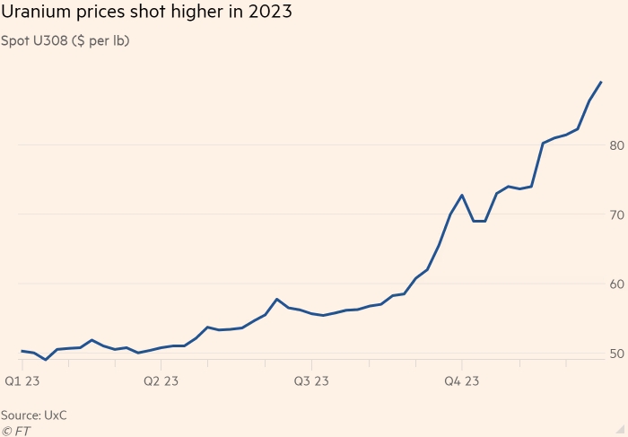 Рост цен на уран в 2023 году был результатом двух долгосрочных экономических тенденций: потребности в энергетической безопасности и стремления к чистому нулю. Несколько очень ярких бычьих событий способствовали этом.