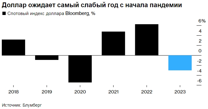 Доллар ожидает самый слабый год с начала пандемии. Источник: Блумберг