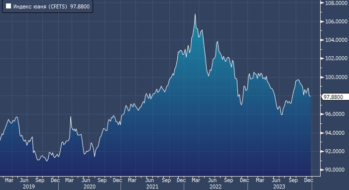 Индекс CFETS завершил год на отметке 97,42, снизившись на 1,27% в этом году, согласно расчетам Reuters, основанным на официальных данных. За тот же период континентальный юань потерял 2,7% по отношению к доллару и, похоже, готовится ко второму годовому падению подряд.
