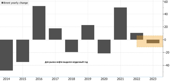 Нефть закончила год в минусе впервые с 2020. Источник: Bloomberg