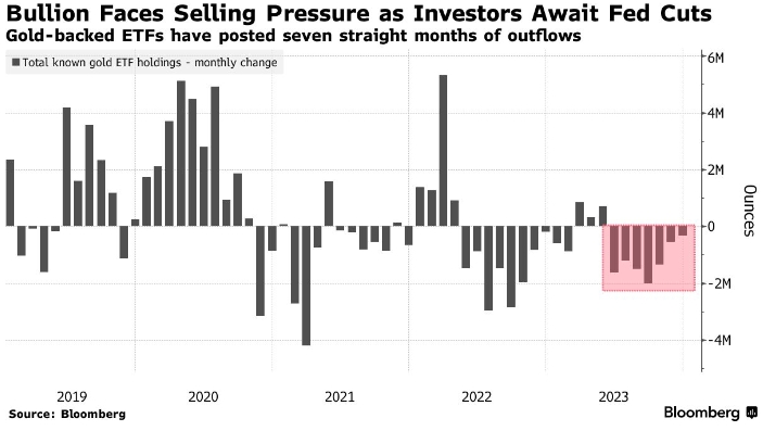 Будущее спотового золота во многом зависит от Федеральной резервной системы США. Ожидания того, что центральный банк будет готов снизить процентные ставки раньше, чем ожидалось, помогли драгоценному металлу достичь рекордного уровня в прошлом месяце. Однако с тех пор эйфория поутихла: на рынках свопов вероятность снижения ставок к марту составляет почти 70 %, что ниже 85 %, наблюдавшихся в конце декабря. Инвесторы биржевых фондов, обеспеченных слитками, находятся в напряжении: декабрь стал седьмым месяцем оттока средств. Тенденция может сохраняться до тех пор, пока рынок не убедится, что ФРС твердо стоит на пути смягчения денежно-кредитной политики, что, как правило, помогает не приносящему процентного дохода металлу.