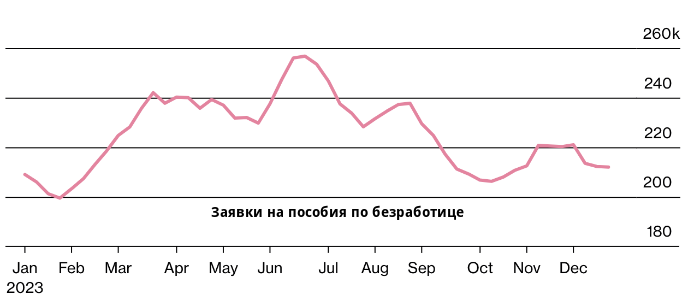Ожидается, экономика США, пережившая фантастический 2023 год, вернется с небес на землю в ближайшие 12 месяцев. Будет ли это рецессия или мягкая посадка, зависит от состояния рынка труда. До сих пор он не обращал внимания на повышение процентных ставок Федеральной резервной системы, но в этом году может наступить переломный момент, даже несмотря на то, что политики дали понять, что они закончили цикл ужесточения. Рост безработицы ударит по потребительским расходам, на долю которых в США приходится почти две трети объема производства. Согласно последним прогнозам ФРС, к концу года уровень безработицы вырастет до 4.1%. Данные по заявкам на пособие по безработице, публикуемые еженедельно, считаются опережающим индикатором состояния рынка труда и, следовательно, заслуживают внимания.