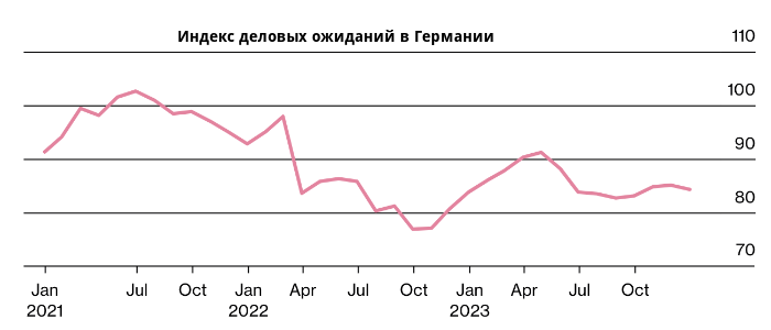 Немецкая экономика оказалась худшей среди крупных экономик в 2023 году. Высокие цены на энергоносители и жесткая денежно-кредитная политика в сочетании с более слабым мировым спросом на ее экспорт вызвали небольшое сокращение валового внутреннего продукта за год. В 2024 году проблем тоже хватает, включая продолжающийся конфликт на Украине, конкуренцию с Китаем в сфере производства электромобилей, и более жесткий контроль над государственными расходами. Промышленному сектору приходится переходить на альтернативные формы энергии после потери доступа к дешевому газу из России и перестройки логистических цепочек в ответ на усилия США по сдерживанию Китая. Это политически-ангажированные и недешевые процессы. Чтобы узнать, как себя чувствует крупнейшая экономика Европы, следите за индексом деловых ожиданий Института IFO.