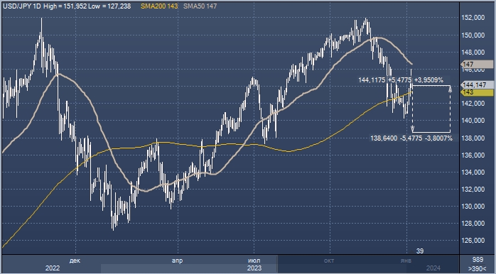 Эрик Нельсон, Чиду Нараянан и Джек Босуэлл рекомендуют продавать USD/JPY с целью 138,65. Это предполагает порядка 3,8% снижения от текущей цены. Стоп-приказ на ограничение потенциально возможного убытка следует разместить на 148,65, считают эксперты. Тайминг сделки — 1–2 месяца.