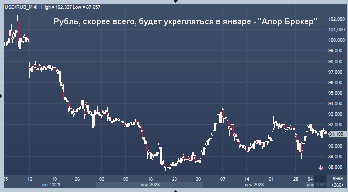 Поэтому спрос на валюту с их стороны обещает снизиться. Все это свидетельствует в пользу укрепления курса российской валюты в первый месяц года", - пишет руководитель направления инвестиционного консультирования "Алор Брокер" Алексей Антонов.