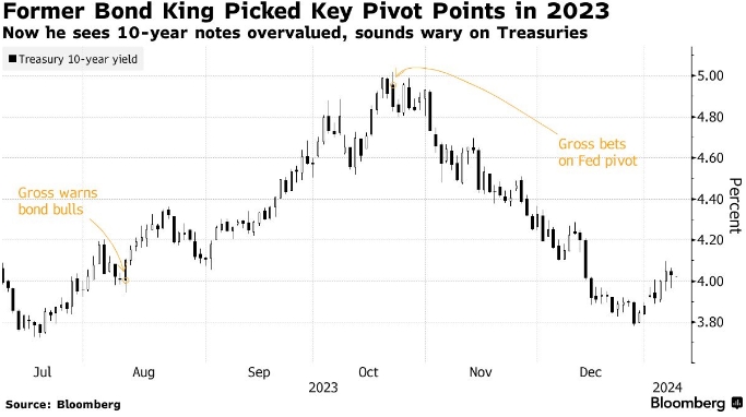 Гросс получил прозвище "короля облигаций", работая в Pacific Investment Management Co, фирме, одним из основателей которой он стал в начале 1970-х годов. В конце прошлого года он заработал миллионы после того, как крупная ставка на то, что Федеральная резервная система перейдет к снижению процентных ставок в 2024 году, принесла выгоду от резкого роста облигаций. Это произошло после того, как в августе он предупредил, что "быки" по облигациям заблуждаются, как раз перед двухмесячным обвалом, который привел доходность к 16-летним максимумам.