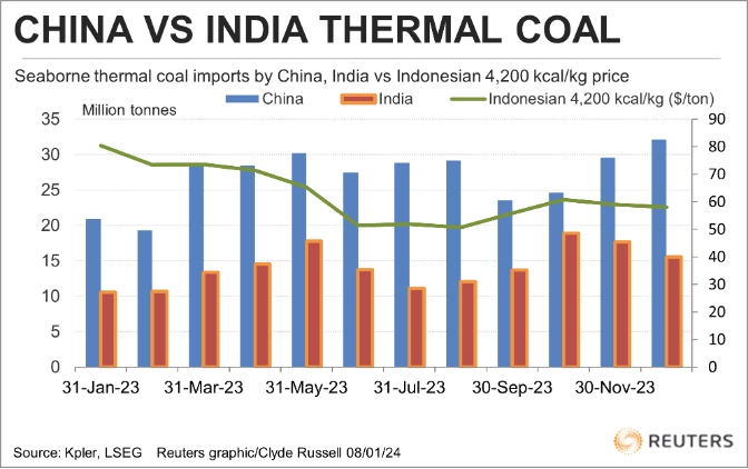 Одна из причин, почему высокий спрос на индонезийский энергетический уголь не проявляется в повышении цен, заключается в том, что Индия, второй по величине импортер угля, сокращает закупки.