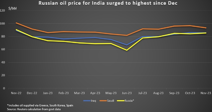 Цена российской нефти для Индии в сравнении с ценами СА и Ирака