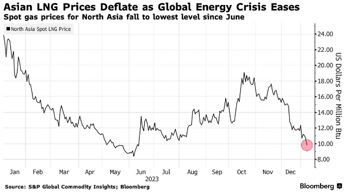 Высокие запасы газа в Северной Азии, где расположены крупнейшие покупатели СПГ, также означают отсутствие необходимости закупать дополнительное топливо. Согласно прогнозам Bloomberg, в период с 9 по 17 января в Китае и на Корейском полуострове температура будет выше сезонной нормы.