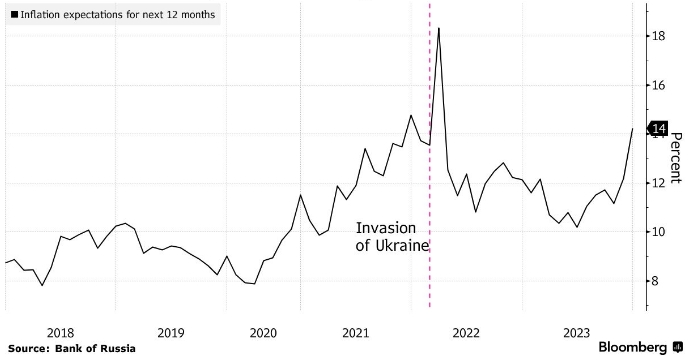 Несмотря на усилия правительства по стабилизации национальной валюты и сигналы монетарных политиков о дальнейшей борьбе с ростом цен, в декабре инфляционные ожидания населения выросли максимально с марта 2022 года, через месяц после начала конфликта на Украине.