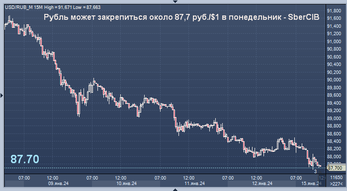 Курс рубля по отношению к доллару США может закрепиться около уровня 87,7 руб./$1 на торгах в понедельник в условиях начала продажи Банком России валюты на 17 млрд руб. в день, считают аналитики SberCIB Investment Research.
