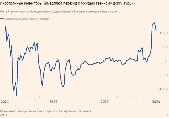 Центральный банк, возглавляемый бывшим банкиром Goldman Sachs Хафизе Гайе Эркан, поднял свою основную процентную ставку до 42,5 процента с 8,5 процента прошлым летом в попытке охладить рост цен, который достиг пика в годовом исчислении более 80 процентов в 2022 году. Повышение ставок Эркан спровоцировало распродажу турецких государственных облигаций, что привело к росту доходности и повышению их привлекательности для управляющих иностранными фондами.