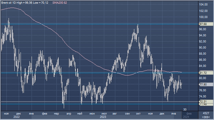 Фьючерсы на нефть марки Brent подорожали на 0,01%, до $77,9 за баррель, в то время как фьючерсы на американскую нефть West Texas Intermediate выросли на 0,1%, до $72,64. Уровень 78 долларов за баррель по-прежнему остается сильным сопротивлением для котировок Brent.