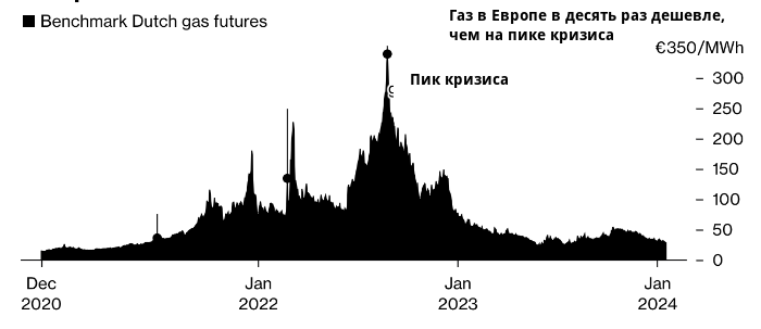 Этого оказалось достаточно, чтобы дать региону ощущение стабильности и уверенности в том, что запасов газа хватит, чтобы пережить оставшуюся часть зимы. Средние цены на электричество в Европе сейчас ниже 30 евро за мегаватт-час. Это в десять раз ниже пиковых значений, достигнутых в 2022 году.