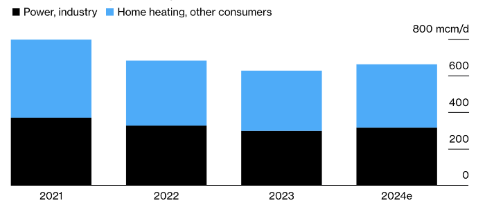 Но впереди долгий путь со многими препятствиями. Соглашение о транзите газа между Россией и Украиной истекает в конце этого года — и вряд ли будет продлено. Это означает, что континент будет получать еще меньше газа из России. Несмотря на огромные глобальные инвестиции в СПГ, большая часть новых мощностей поступит на рынок не ранее 2025 и 2026 годов.