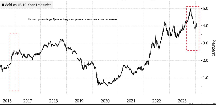 Доходность гособлигаций выросла после победы Трампа в 2016 году