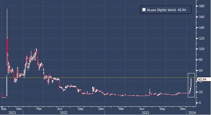 Однако цена акций Digital World остается все еще более чем вдвое ниже уровня, наблюдавшегося в марте 2022 года, после того как слияние компании с Trump Media & Technology Group, материнской платформой социальных сетей Трампа Truth Social, столкнулось с многочисленными задержками с момента объявления об этом в октябре 2021 года.
