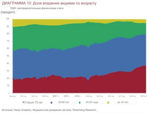 По данным Rosenberg Research, 80% акций США принадлежат американцам пенсионного возраста или близким к нему. И это большая проблема, если экономика войдет в рецессию.